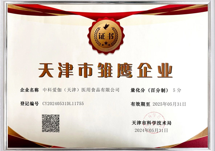在 2022 年被国家认定为高新技术企业,于 2023 年获评国家科技型中小企业,2024 年荣获天津市雏鹰企业称号,并且是省级营养师协会的副会长单位。